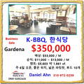 인기 있는 K-BBQ 한식당 매매, Gardena, $35만