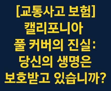 많은 운전자가 Liability, Collision, Comprehensive 세 가지를 모두 가입하면 풀 커버리지(Full Coverage)라고 생각합니다. 하지만 이는 나의 차(Vehicle)에 대한 보호일 뿐, 나의 몸과 인생(Life)에 대한 결정적인 보호가 빠져있습니다.