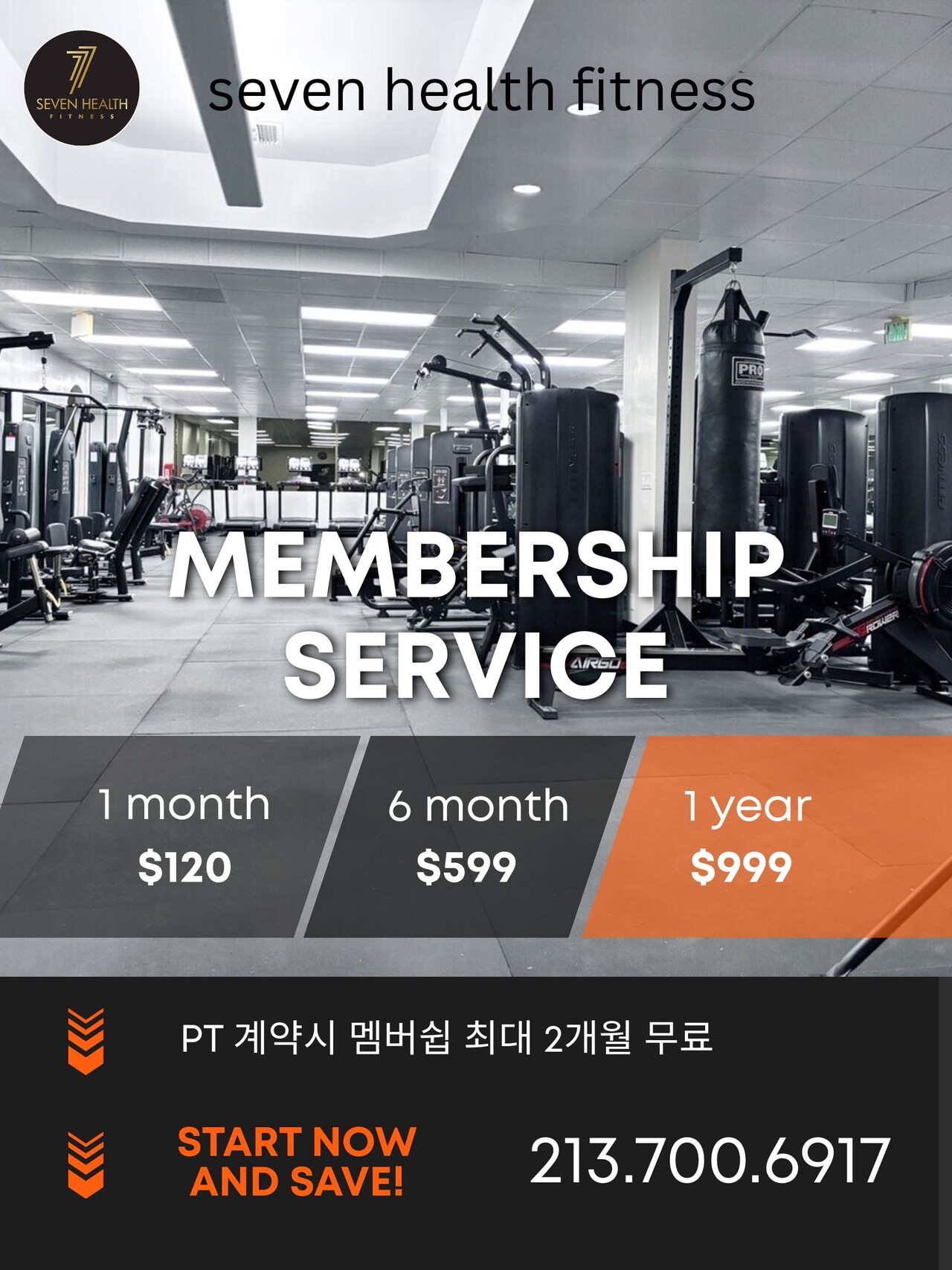 $499 (월 7회) + 1달 멤버쉽 free ($120 Reg.)