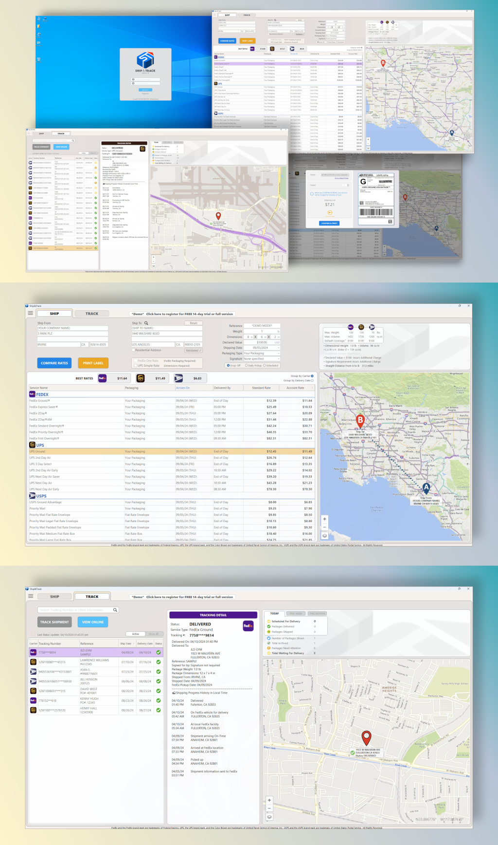 FedEx, UPS, USPS의 모든 SHIPPING OPTION, DELIVERY DATE, RETAIL PRICE, ACCOUNT PRICE들을 한눈에 비교