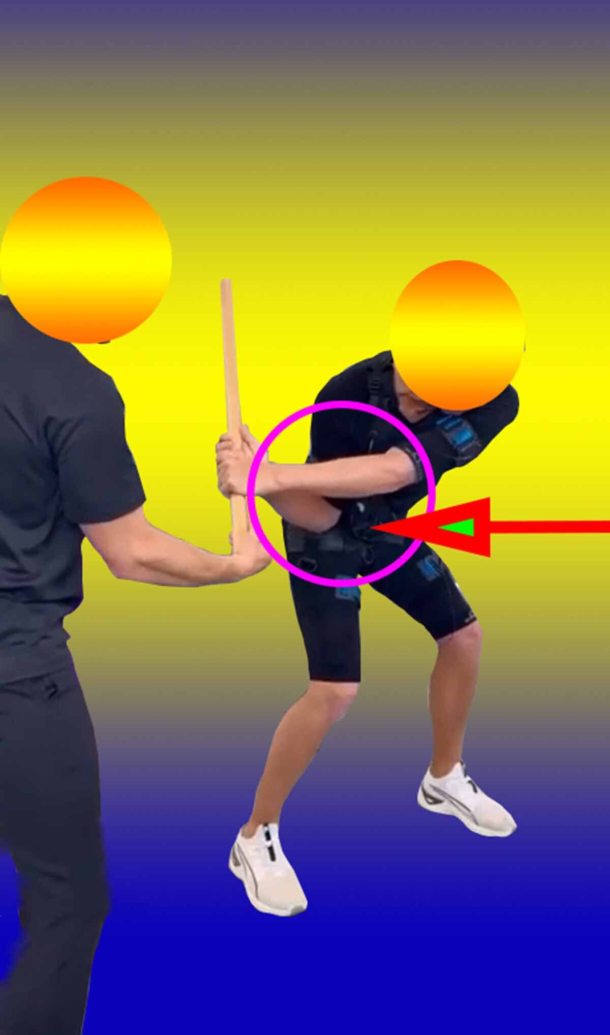 그러면 오른쪽 ELBOW 가 프로들 처럼 알파벳 대문자 L 모양을 유지 하면서 몸 중심 앞으로
