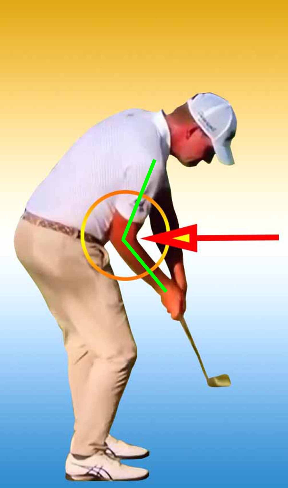프로들 중에서도 엘보우가 몸 안쪽으로 더 많이 들어와서 임팩트 순간 FORWARD PRESS 를 더 많이