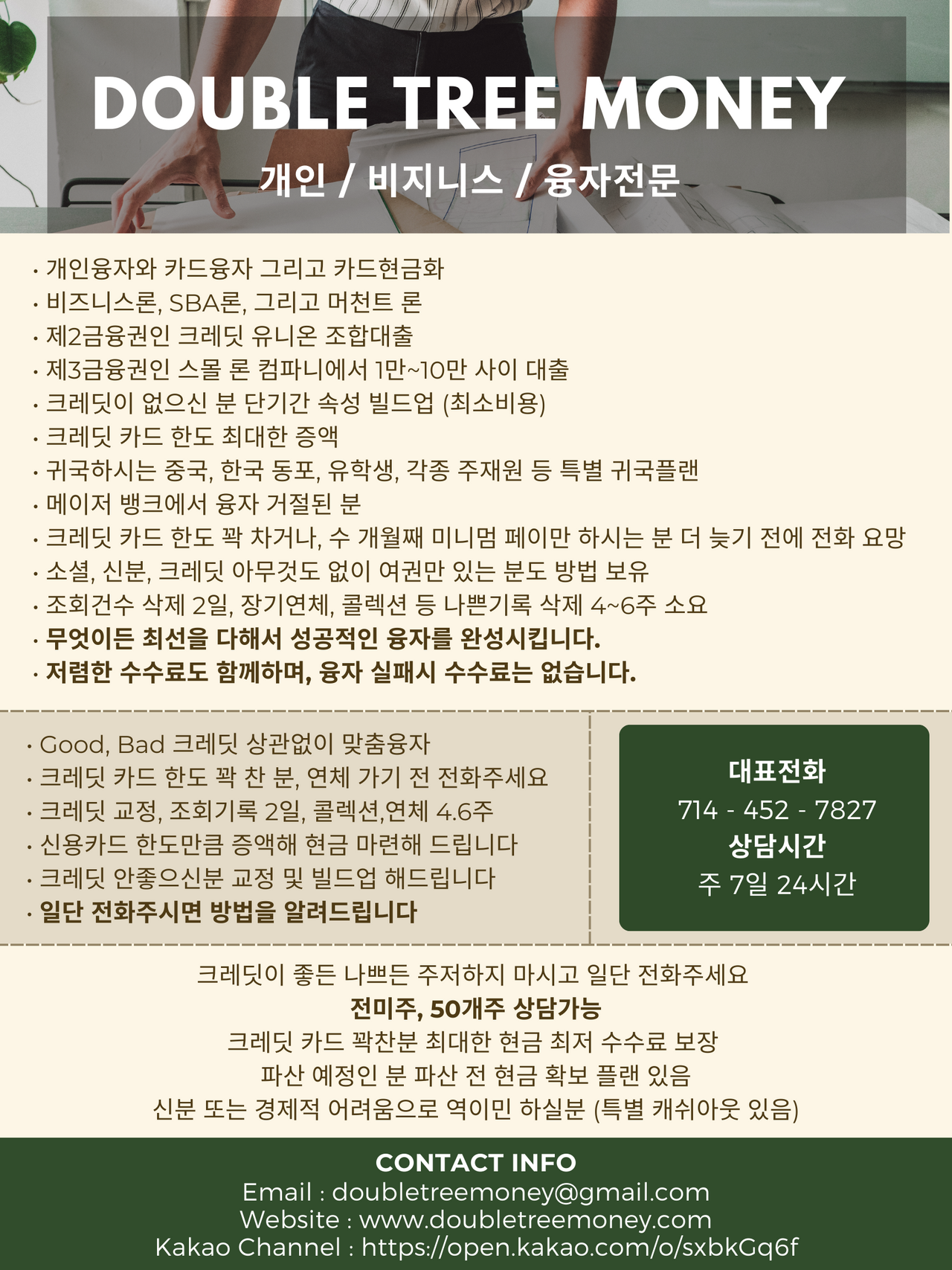 - 사용중인 크레딧 카드/ 카드 리밋을 초과 사용한 크레딧 카드 역시 재융자 가능합니다.  예를들어 크레딧 카드 리밋이  5만인 크레딧 카드를 이미 다 사용하셨거나 거의 소진된 상태라도 다시금 리밋 만큼 재융자 가능합니다.  포기하지 마시고 연락 주시면 반드시 도움이 되실 겁니다