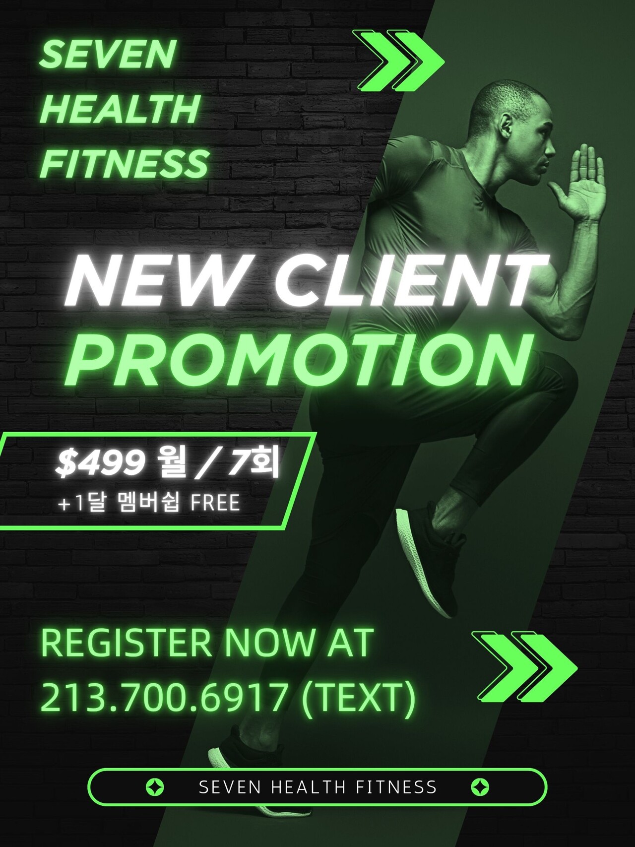 퍼스널 트레이닝 프로모션 $499 (월 7회)+1달 멤버쉽 프리($120 Reg.)