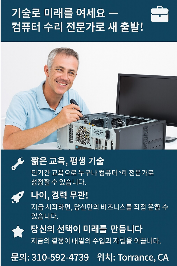 기술로 미래를 여세요 — 컴퓨터 수리 전문가로 새 출발!
