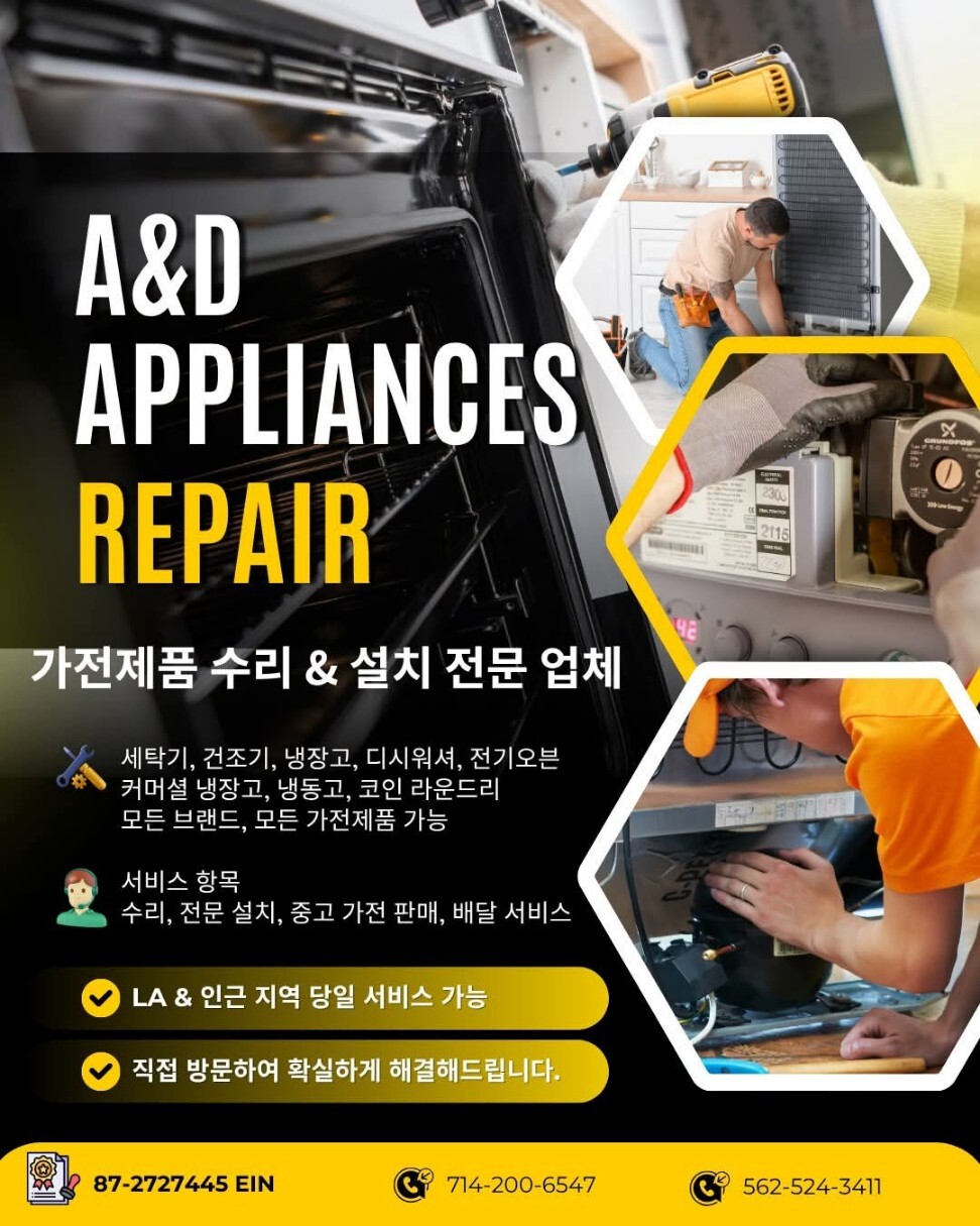 ????️ A&D Appliances가 직접 방문하여 확실하게 해결해드립니다.