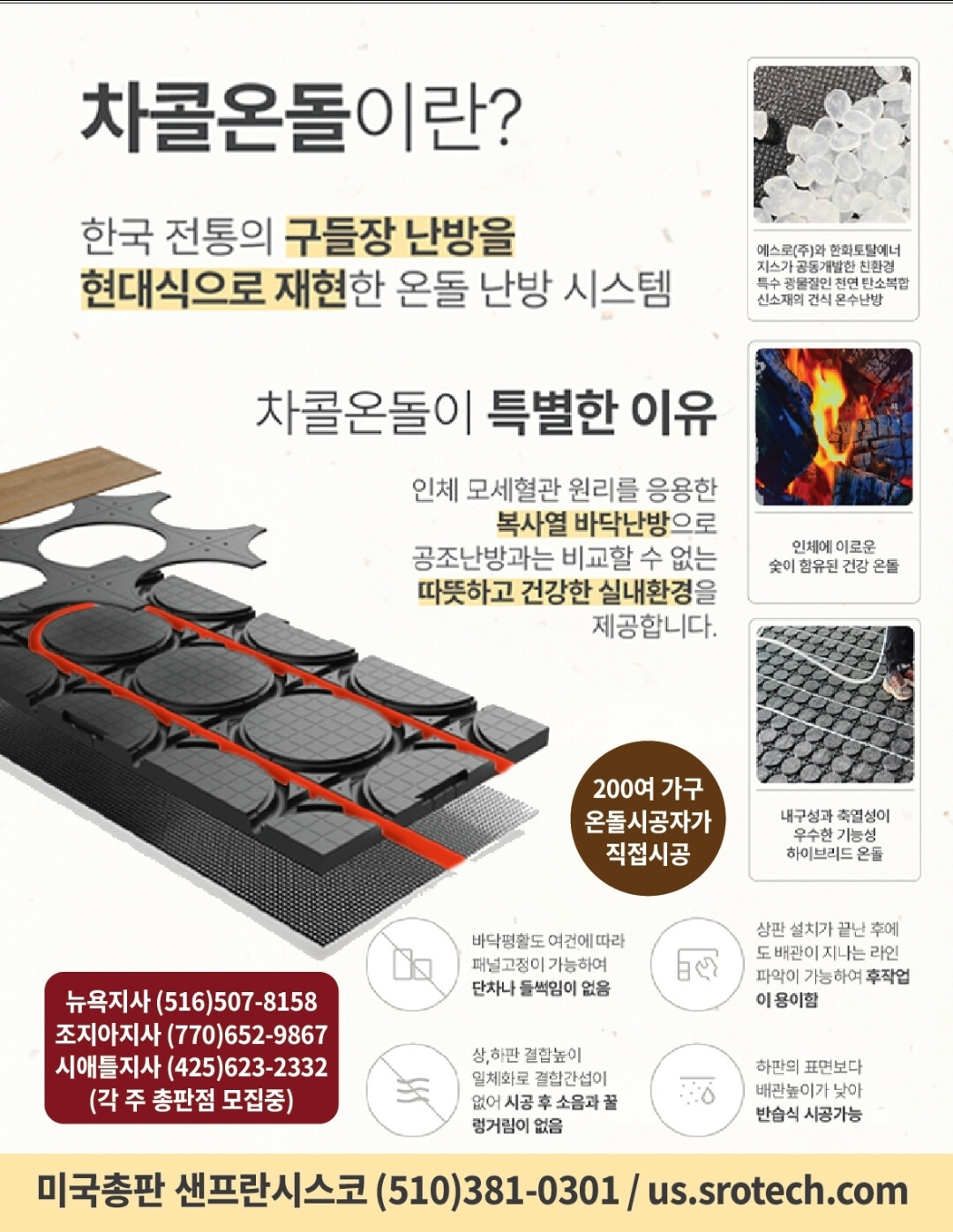 한국의 따뜻한 온돌, 이제 미국에서도 만나보세요.