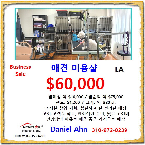 고정 고객층 확보된 애견 미용샵, LA 한인타운, $6만에 매매