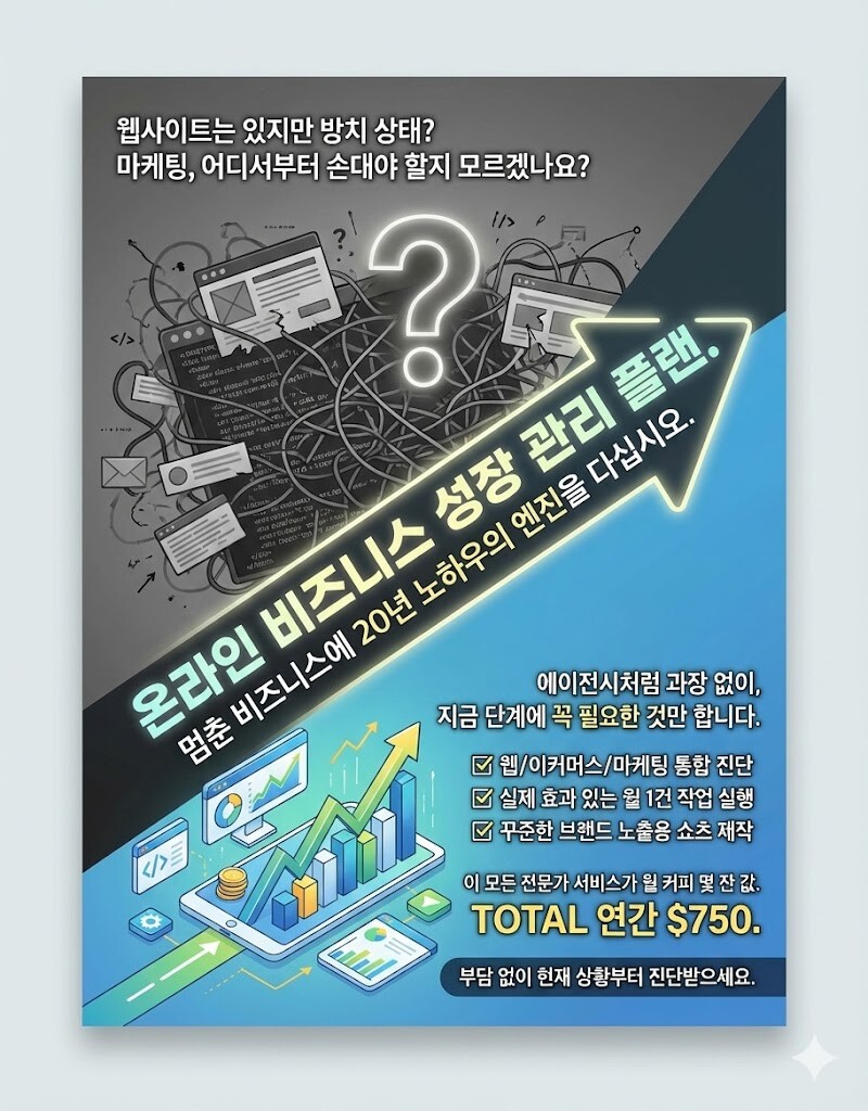 20년 동안 수많은 쇼핑몰과 웹사이트를 직접 만들고, 운영하고, 실패와 회복을 반복하며 확인한 사실은 단순합니다.
