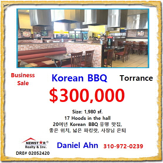 Korean BBQ 식당, $30만, 토런스