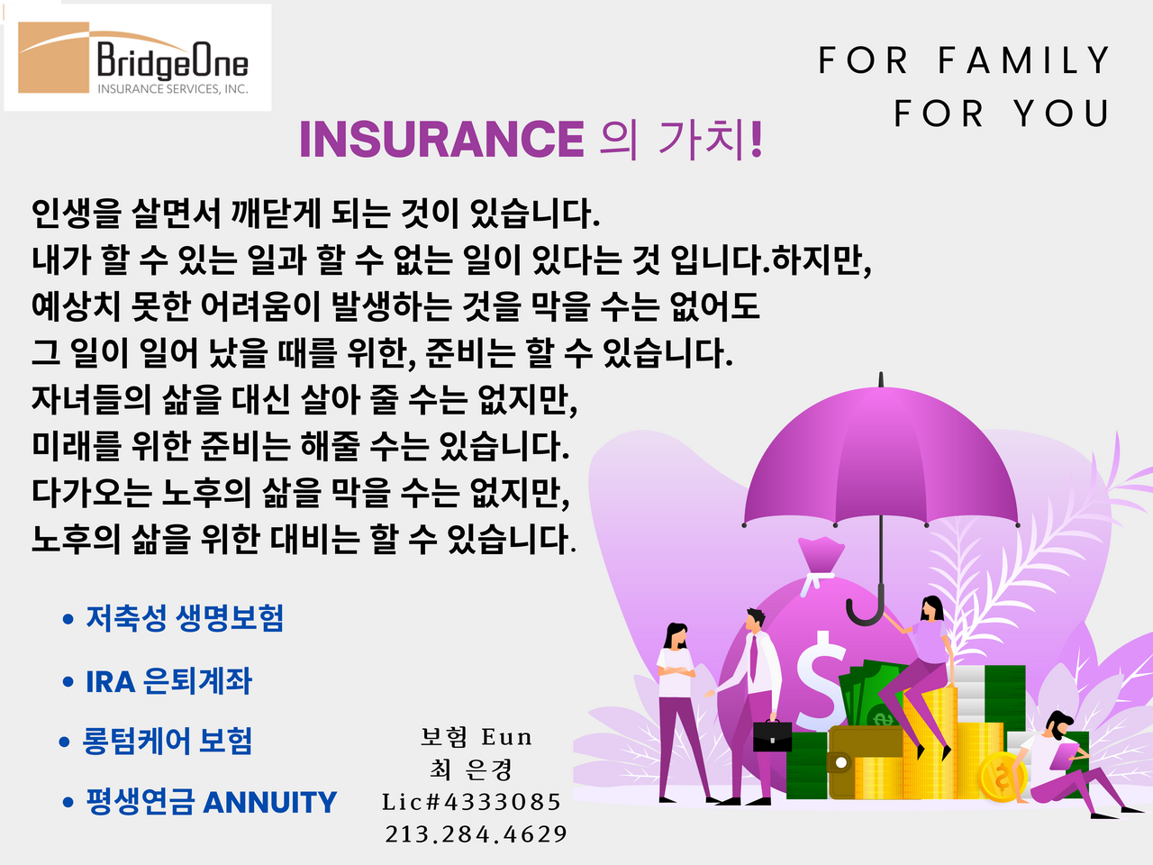 같은 마음으로 함께 하는 에이전트 최은경 213-284-4629