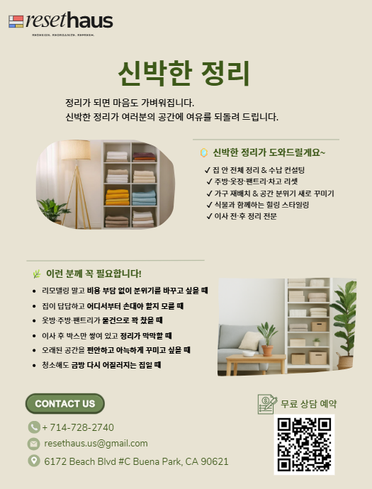 LA, OC 정리전문 옷장·키친·차고 완벽 정리 신박한 정리