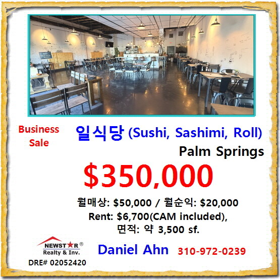 일식당 (Sushi, Sashimi, Roll), $35만, Palm Springs