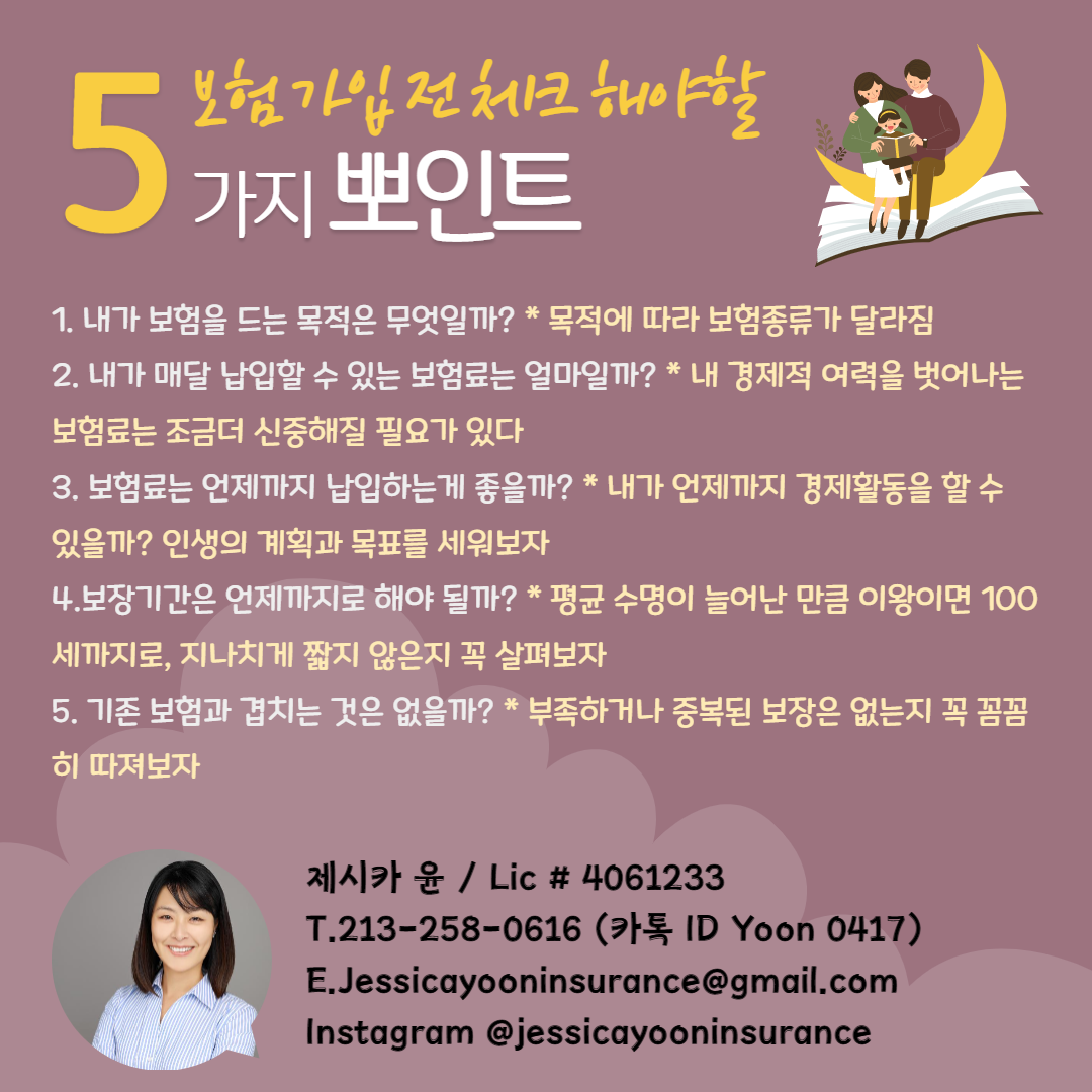 Email: Jessicayooninsurance@gmail.com Facebook: Welcomejessicayoon