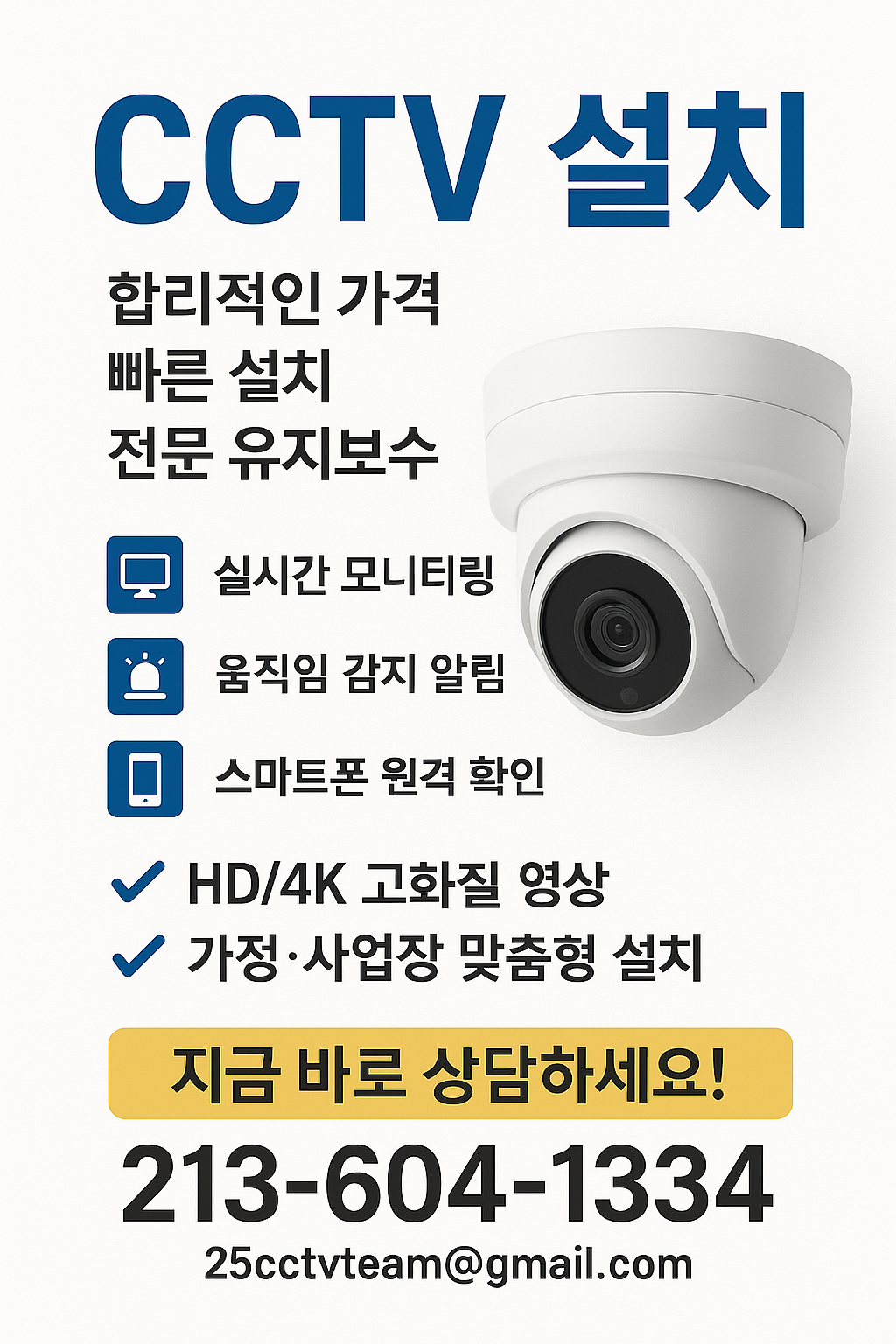 감시 카메라 (CCTV) 설치, 수리 및 업그레이드 해드립니다.