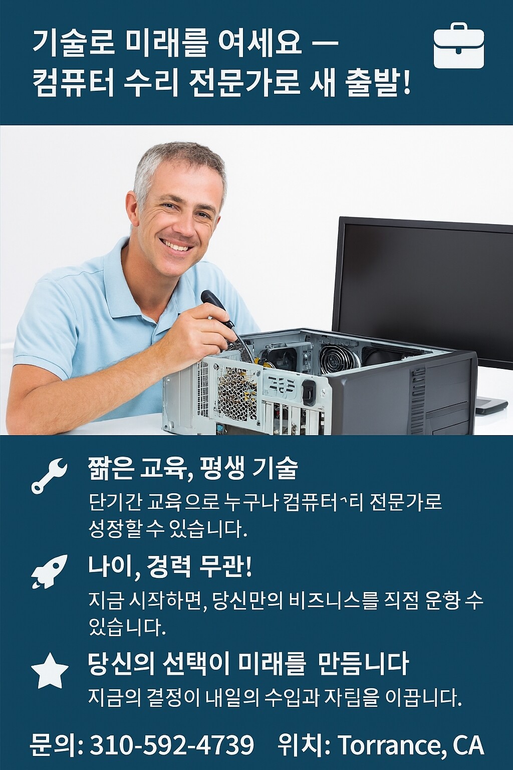 기술로 미래를 여세요 — 컴퓨터 수리 전문가로 새 출발!