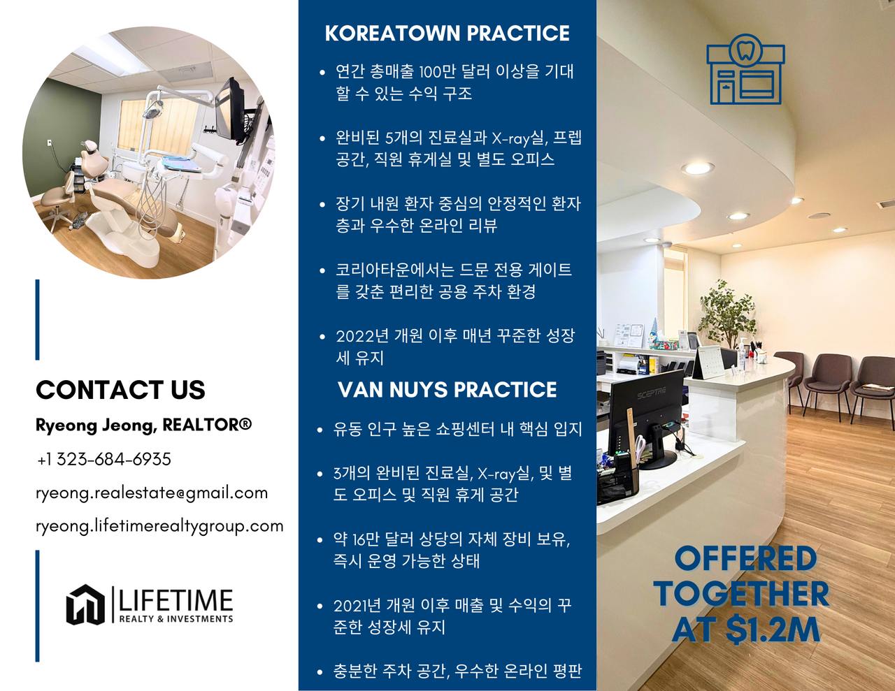 LA 한인타운 중심부에 위치한 치과로, 한인 환자 비중이 높고 안정적인 내원 패턴을 가지고 있는 오피스입니다.