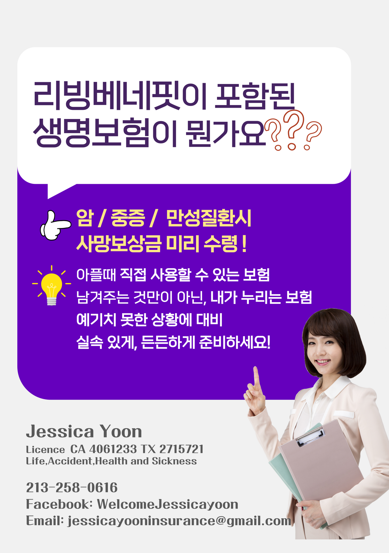 Email : jessicayooninsurance@gmail.com Instagram:@jessicayooninsurance