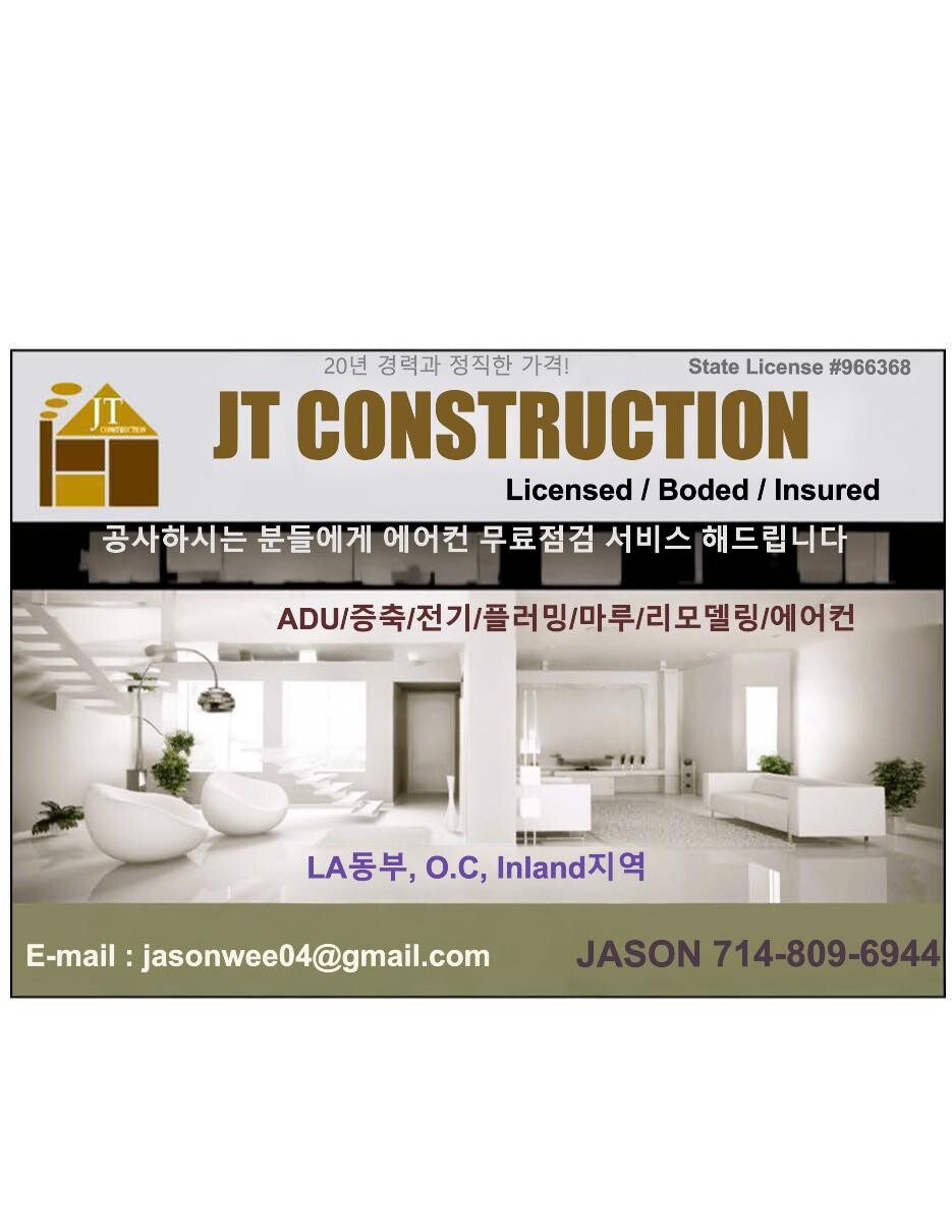 모든 공사 가능합니다,. 특별히 기존 거라지를  ADU (Attached Dwelling Unit) 공사 원하시는분 꼭 상담바랍니다.