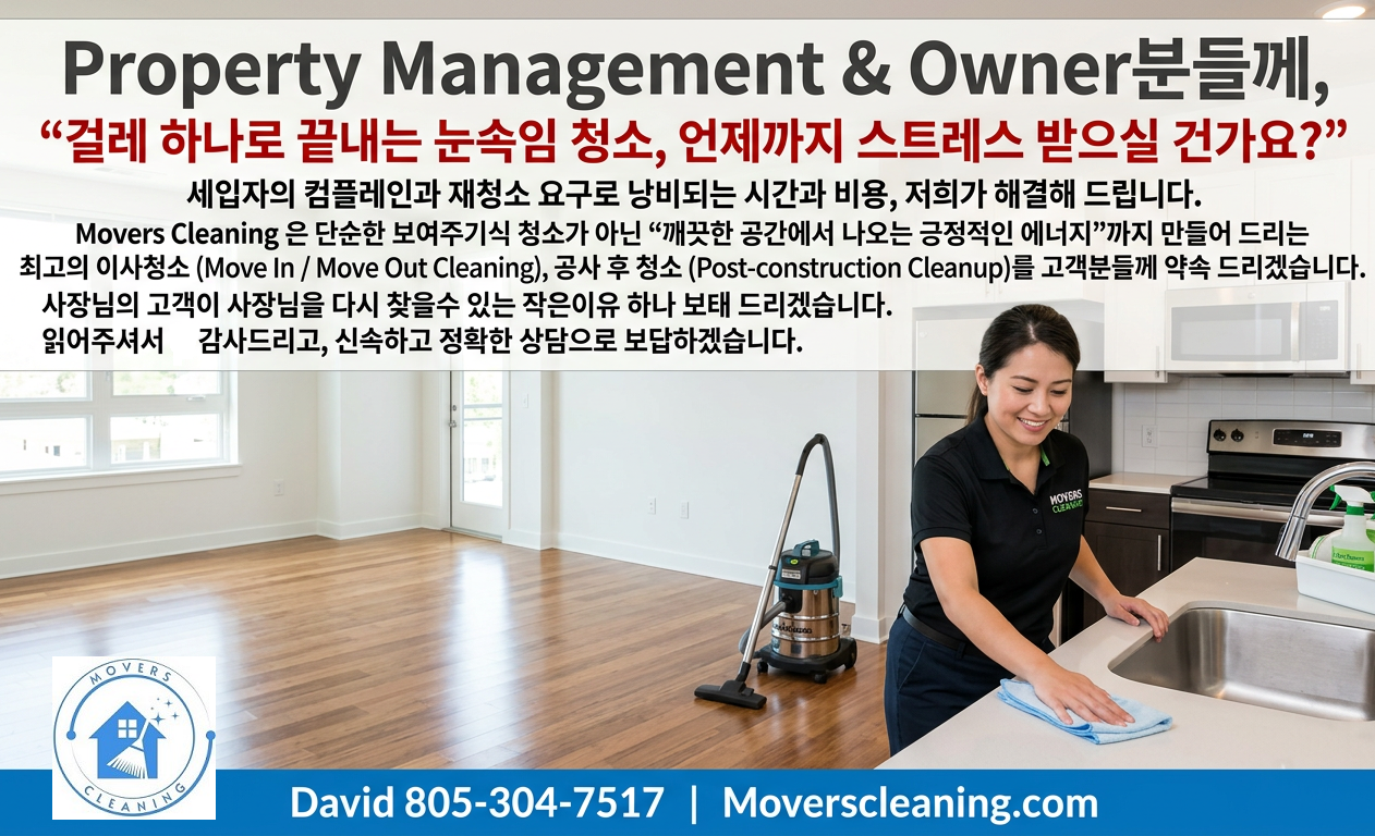 글쓴이: Moverscleaning  |  등록일: 03.19.2026 21:36 pm  |  조회수: 28
