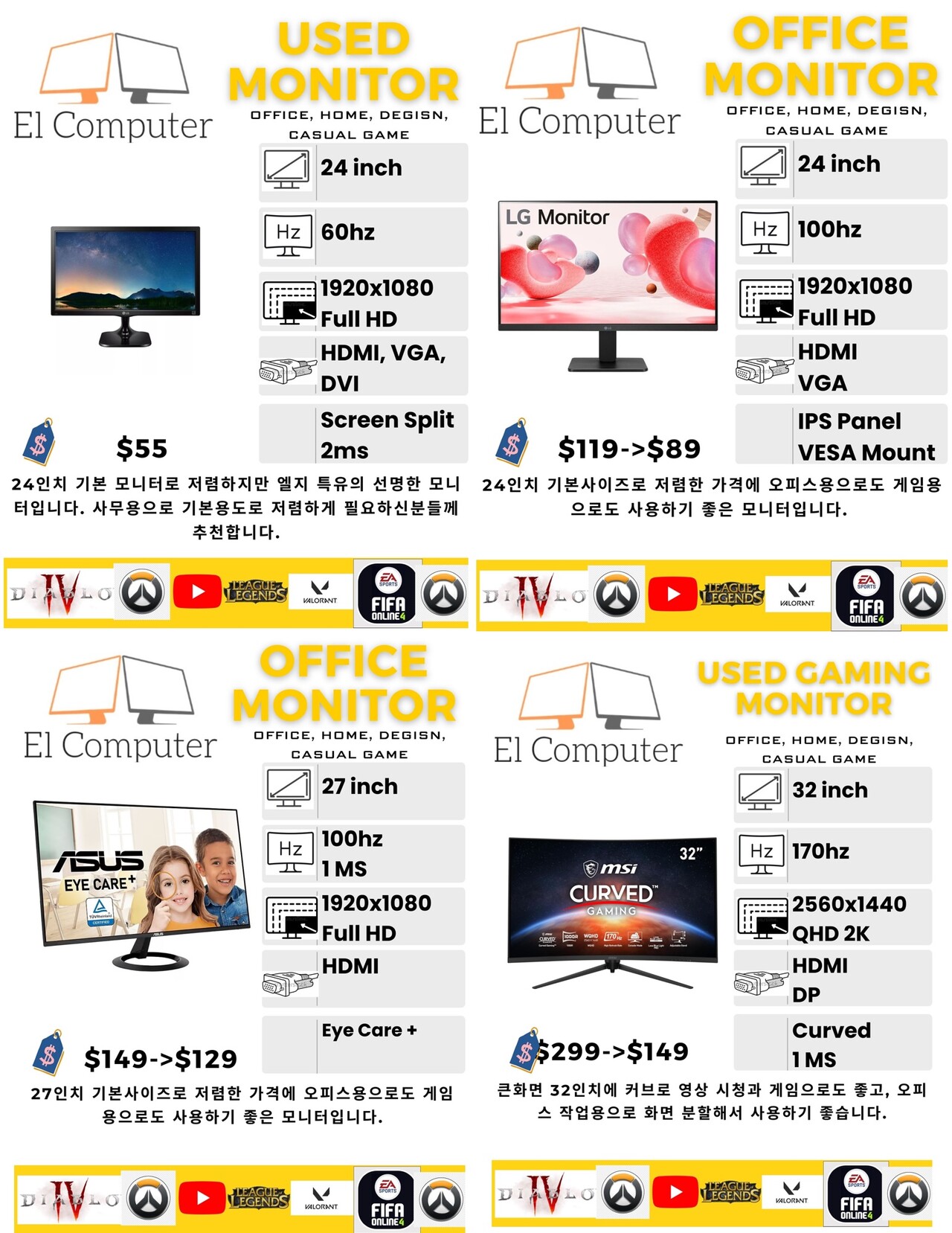 모니터 (New, 중고) 최저가로 판매합니다.같은 모델이나 비슷한 사양 링크했습니다. 더 저렴합니다.