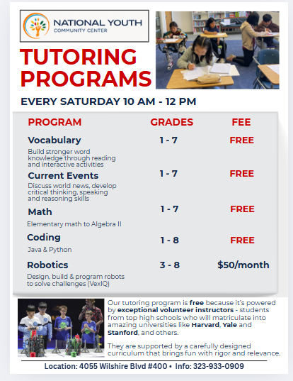 NYCC는 LA 카운티 지역의 저소득층 학생들, 혹은 부족한 아카데믹