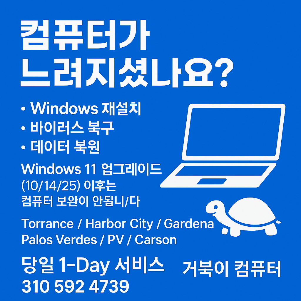 Windows 11 upgrade (10/14/25) 이후는 컴퓨터 보완이 안됩니다)