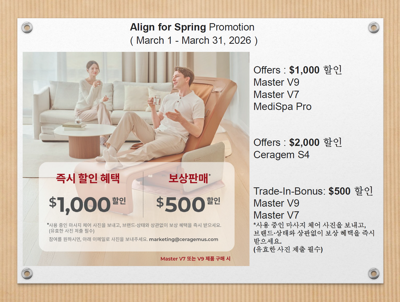 3월 세라젬 플러튼 프로모션 ( V7 & V9 only ) + $500 자/타사 추가보상할인