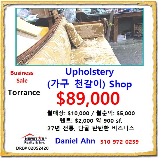 토런스의 27년 전통의 유명 Upholstery(가구 천갈이) 비즈니스 인수 기회