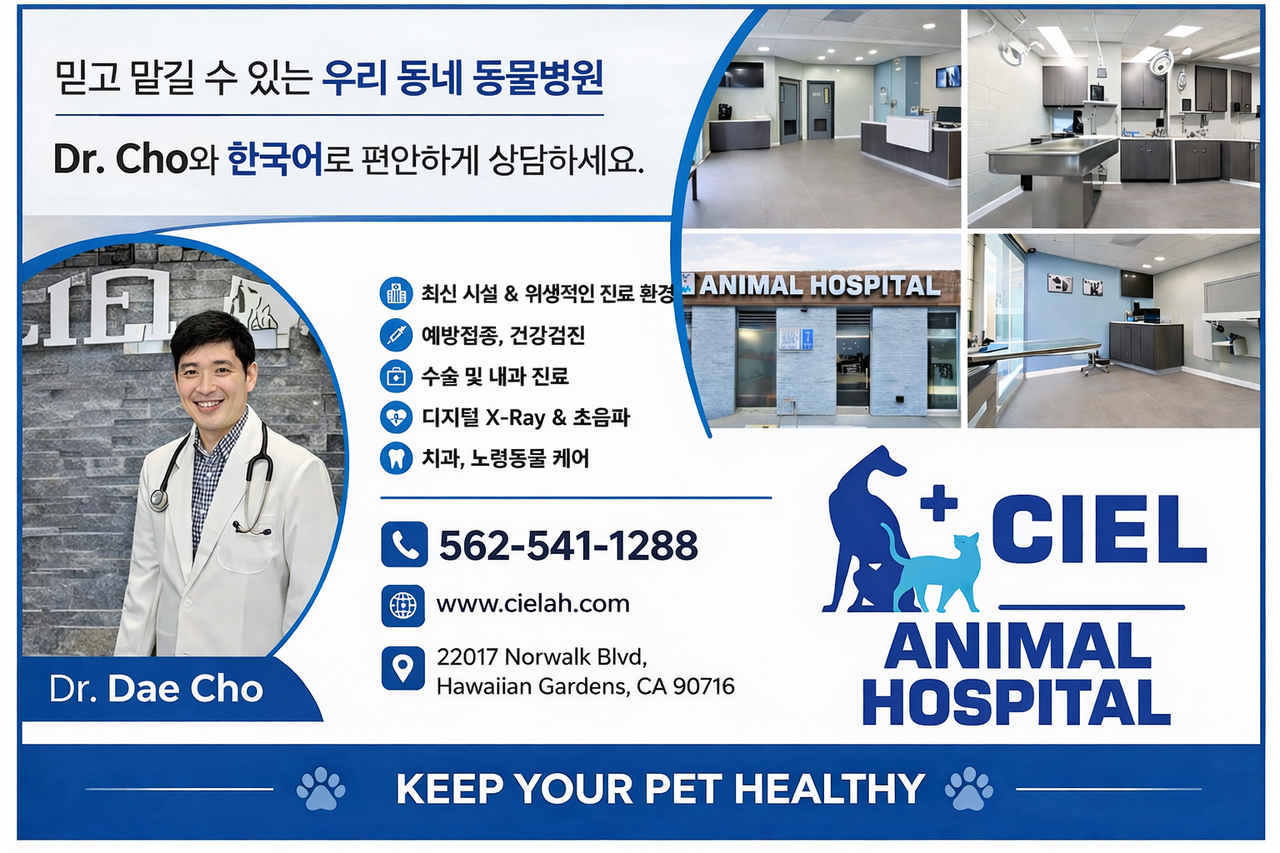Ciel 동물병원 에서 닥터 조 와 한국어로 편안하게 상담 받으세요