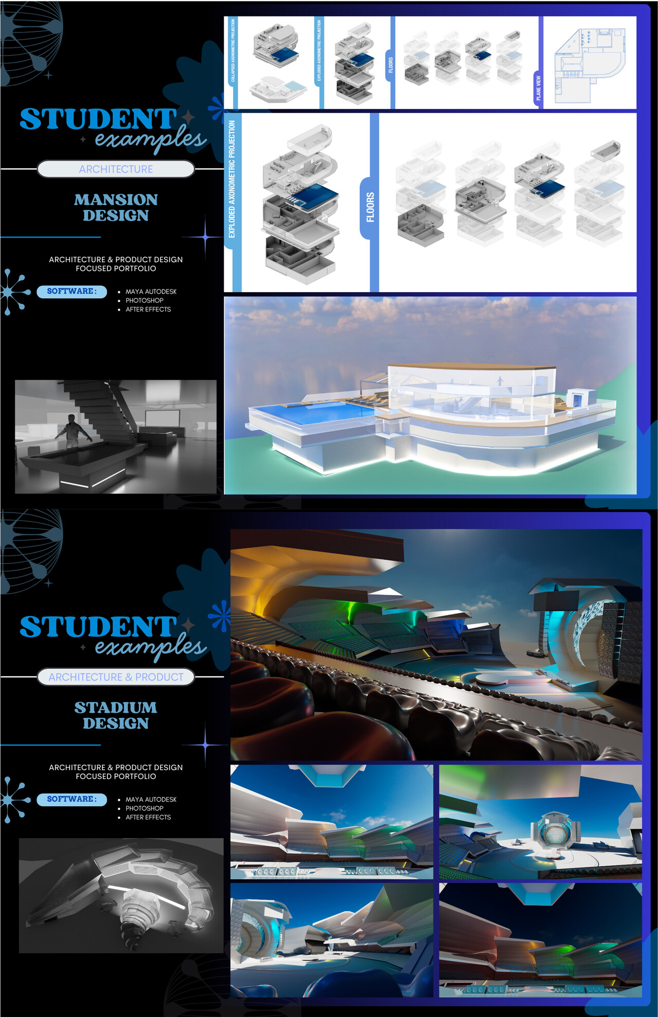 * Advanced: Illustration, animation, architecture, set design, digital art, 3D modeling & texturing