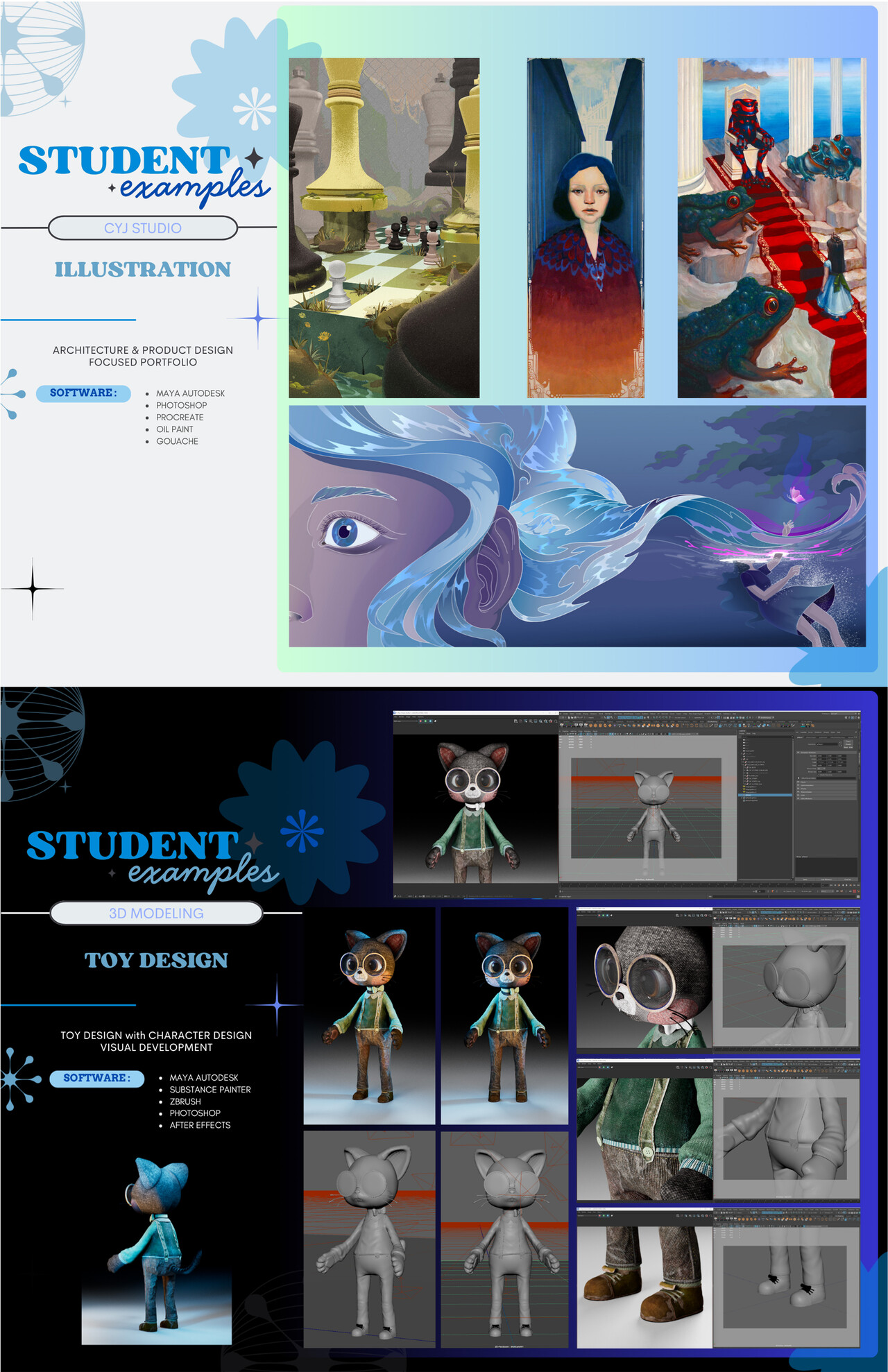 * Advanced: Illustration, animation, architecture, set design, digital art, 3D modeling & texturing