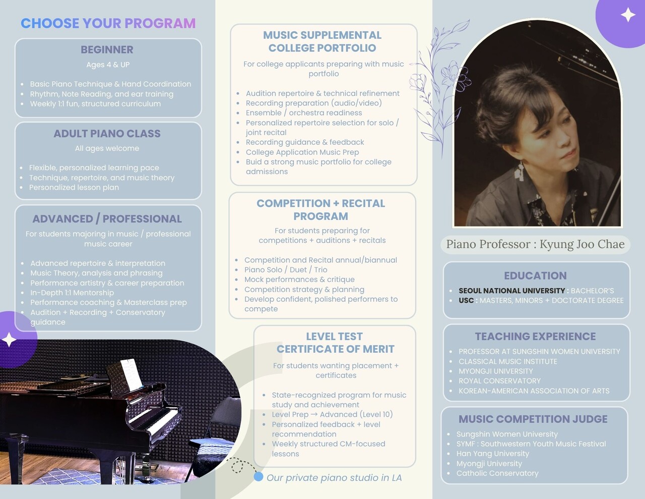 LA KJC PIANO STUDIO 피아노 Piano Performer+Professor