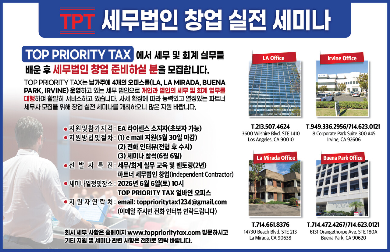 글쓴이: 탑프라이어티TAX  |  등록일: 04.29.2026 15:17 pm  |  조회수: 19