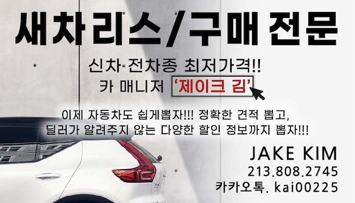 101 AUTO SMART CHOICE 의 JAKE 입니다.