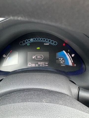 배터리는 12개 만점중 9개 수준으로 대략 70마일정도 가는것으로 나옵니다. (사진참조)