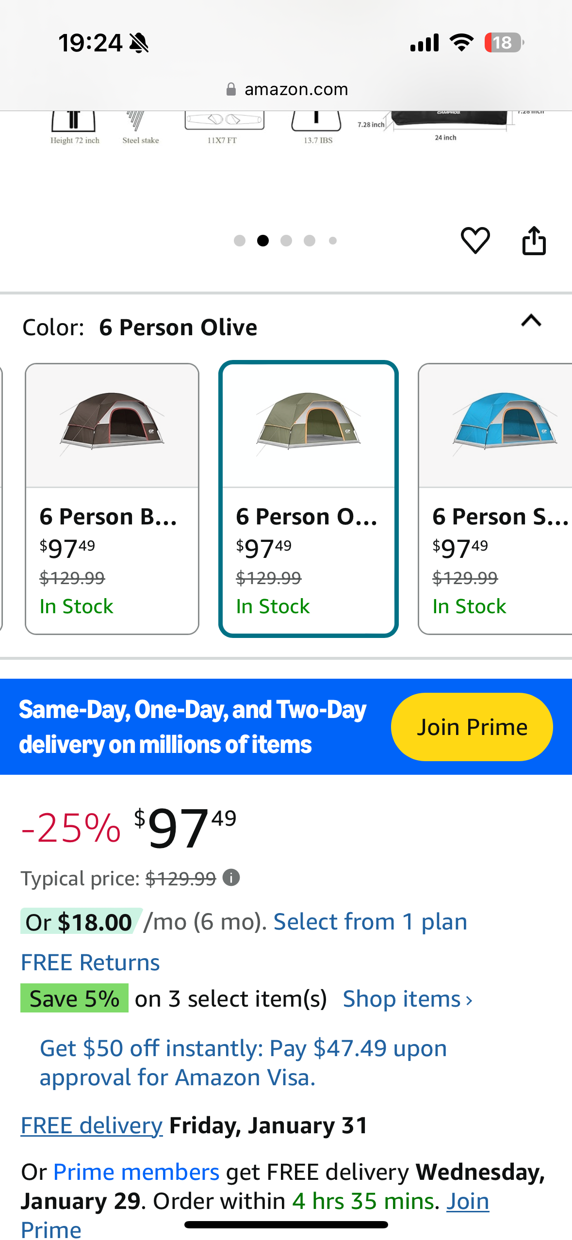 3.텐트 6이분 NEW 아마좀 97불 +Tax 지금 70불 팝니다