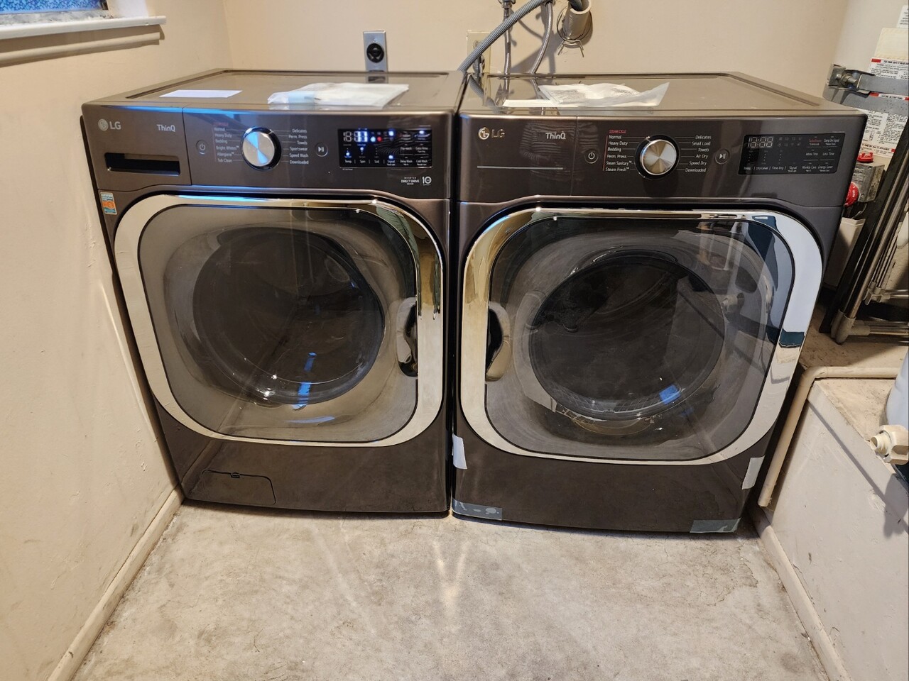 I'm currently selling a gas oven range, washing machine, dryer, and pedestals.