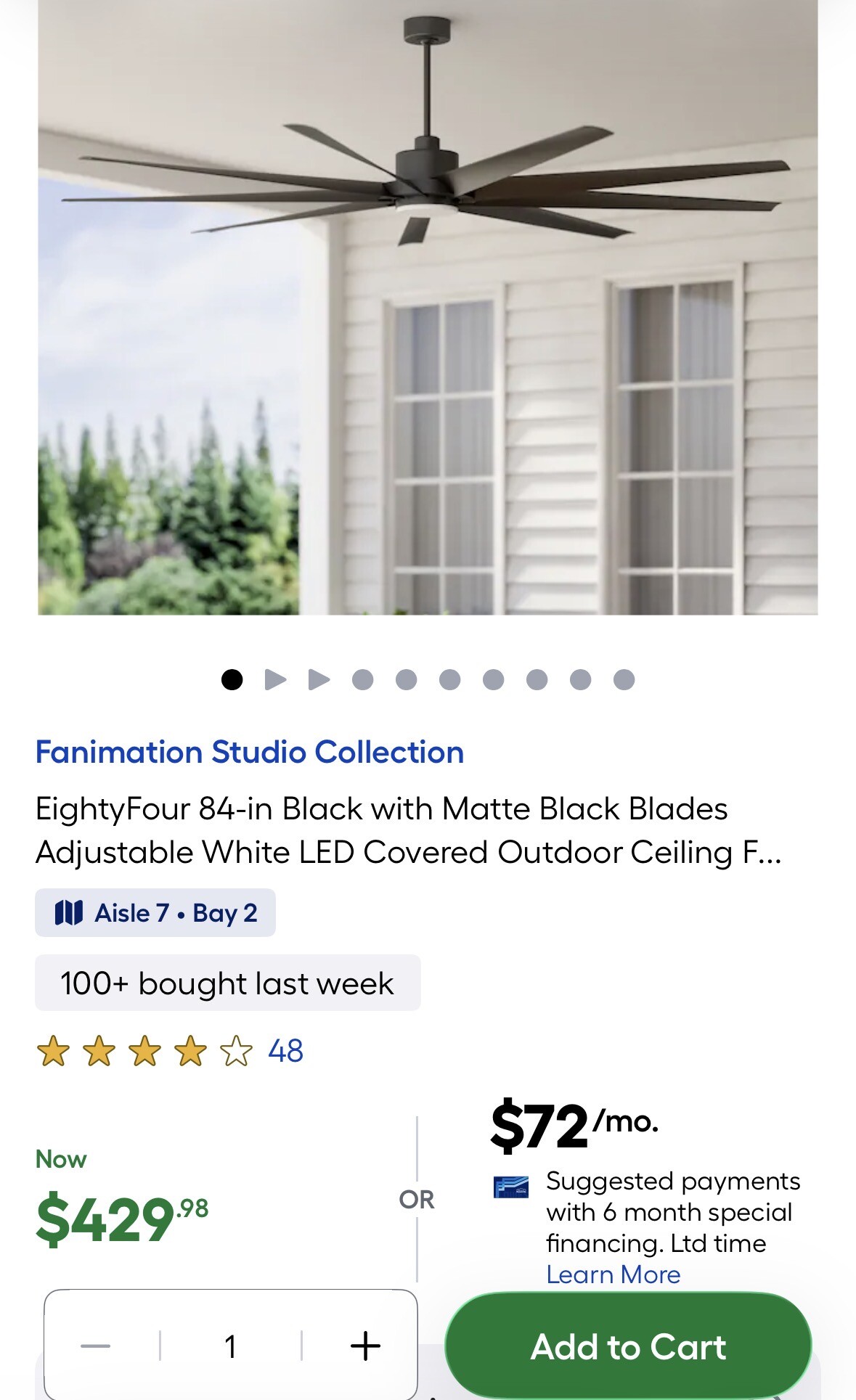 EightyFour 84-in Black with Matte Black Blades Adjustable White LED Covered Outdoor Ceiling Fan