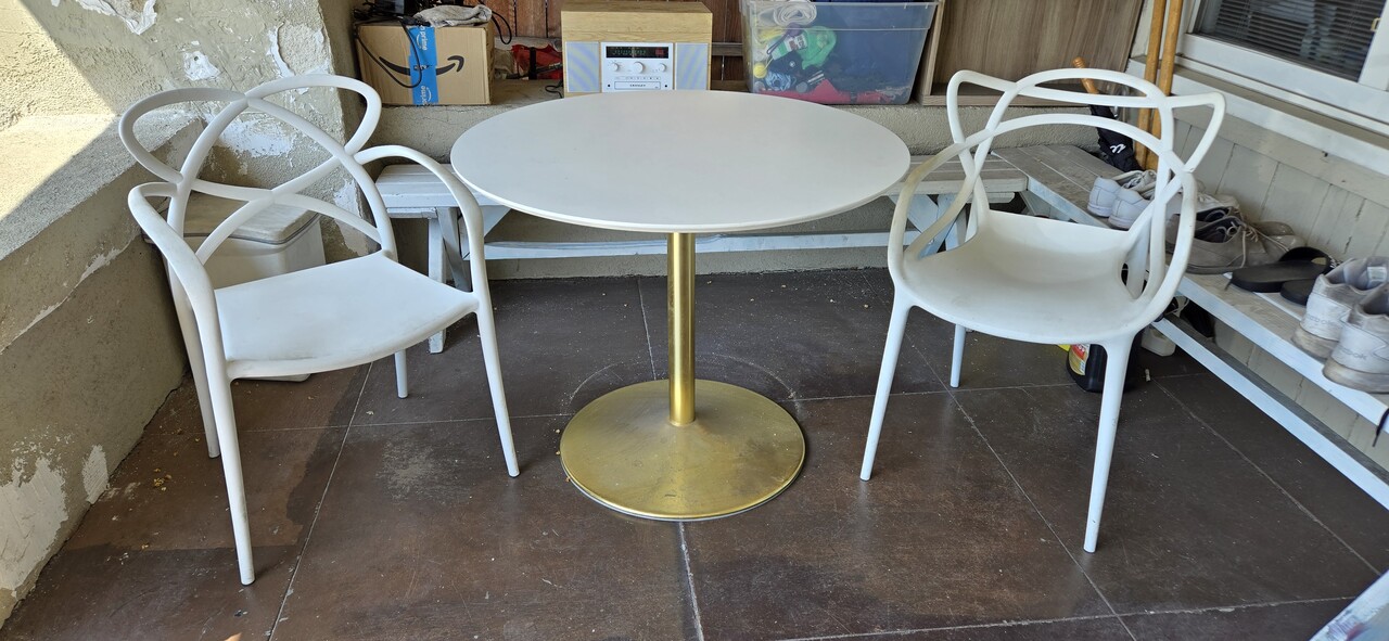 4. 등받이에 무늬가 있는 흰색 의자+테이블