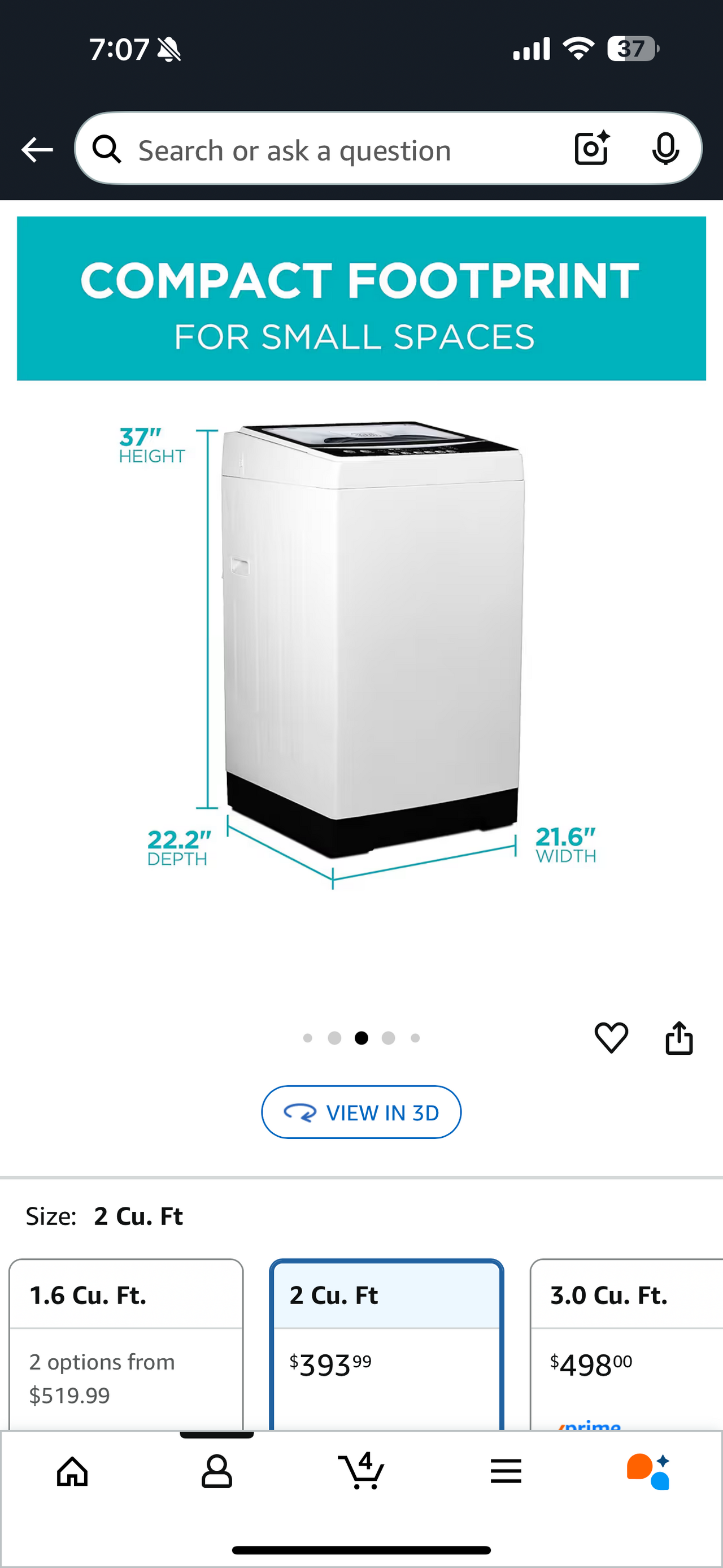 washer has a capacity of 2.0 cu. ft. and hot, warm, and cold water options for small, medium, and large loads of laundry. Wash up to 15.4 lbs. of laundry per load.