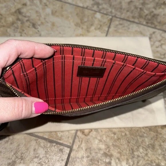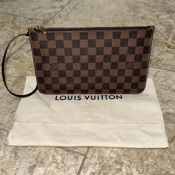 Louis Vuitton Pouch Neverfull Pochette in Brown Damier Ebene and Golden Brass hardware. The product is Like New. Never used.