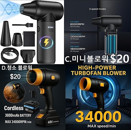 ❌ C . 미니 청소 블로워 $20  ❌