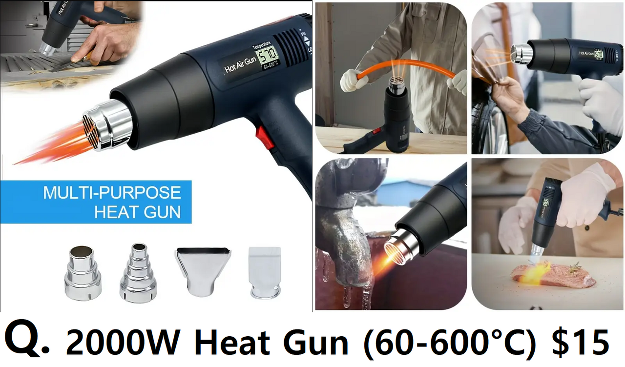 ❌ Q . 2000W Heat Gun ( LCD , 60 - 600°C, L/H ) $15 ❌