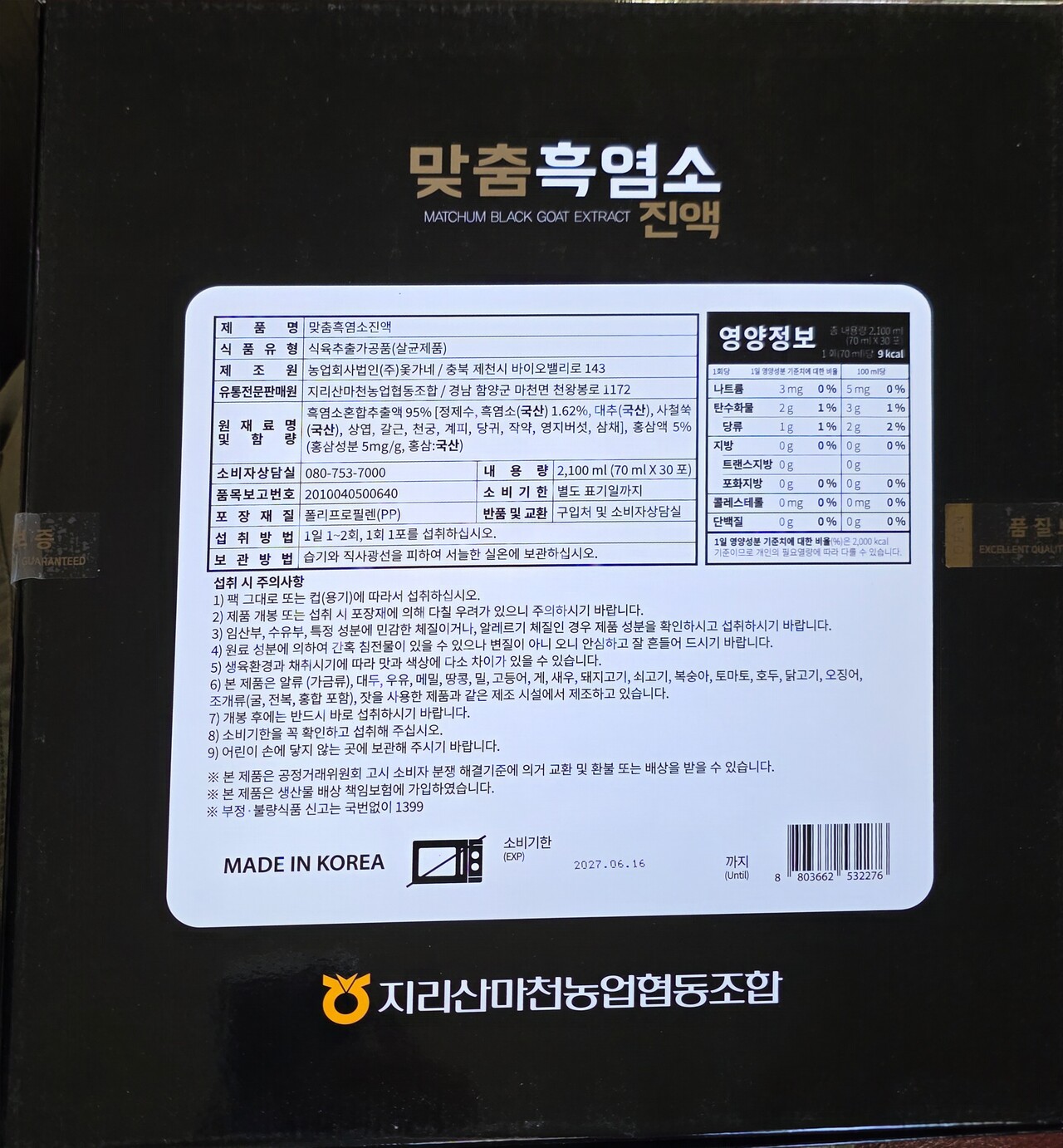 지리산마천 농협협동조합 맞춤 흑염소 진액 60포