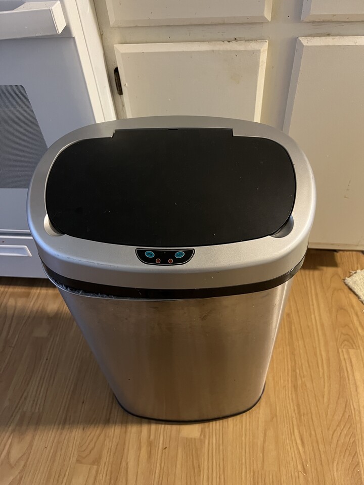 배터리 넣고 가까이 가면 자동으로 올라가요! 원하지 않으몀 배터리 빼셔도 됩니다 60리터 크기 입니다