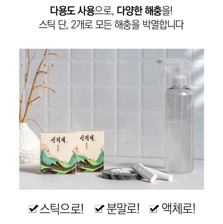 The most safe & easy pest control that`s gaining popularity in Korea! Now you can completely eliminate cockroaches, mosquitoes, and ants! Just draw a line with a thickness of 1/2 cm where they are present, and they will completely go away~ Now you can win the war against insects and mosquitoes!