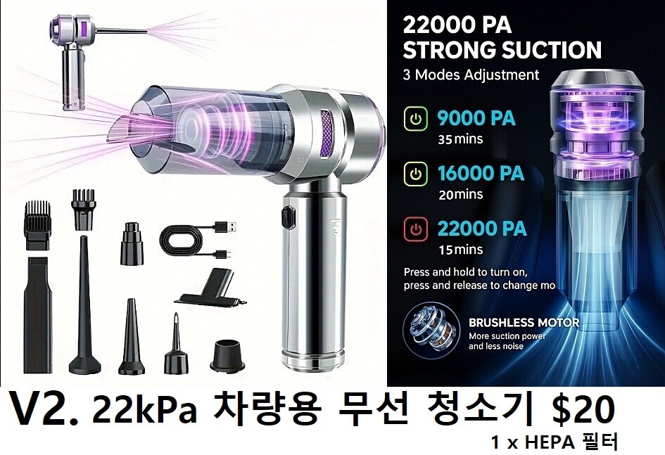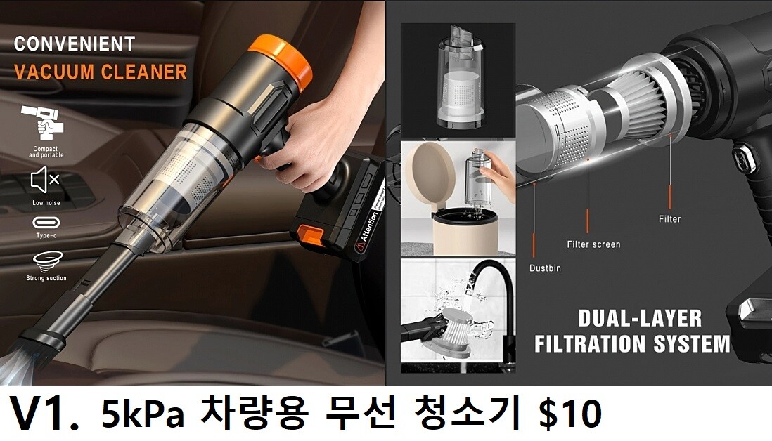 ❌ V1 .  5Kpa 차량용 무선 청소기 $10 ❌