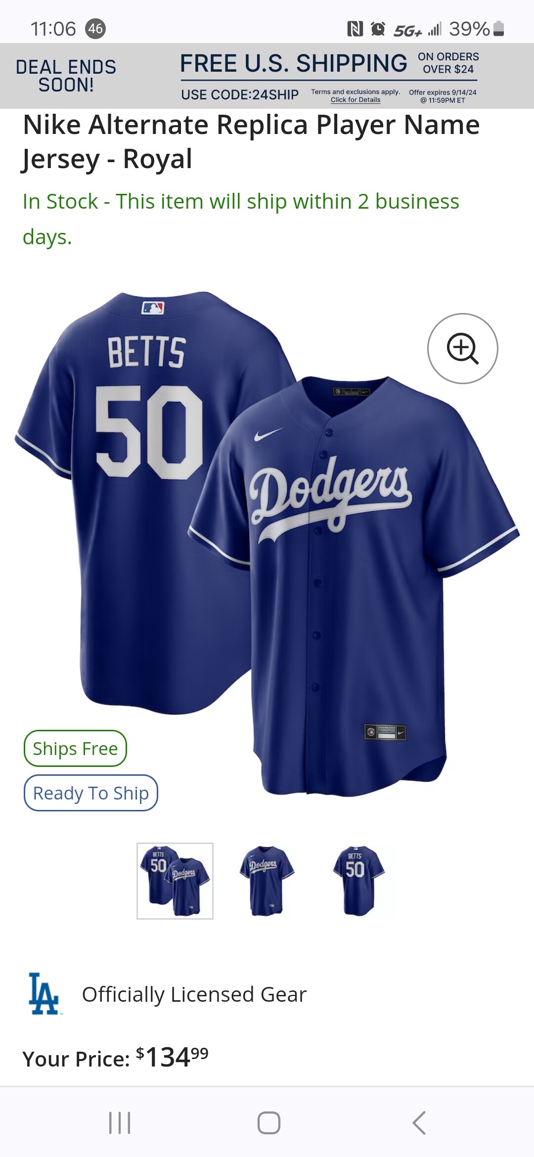 Nike store나 Dodger Clubhouse store에서 정가에 비싸게 구입하지 마세요