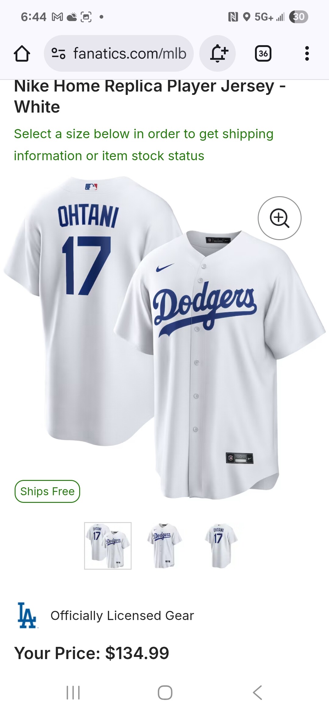 3. White Ohtani Limited Jersey L/XL $110